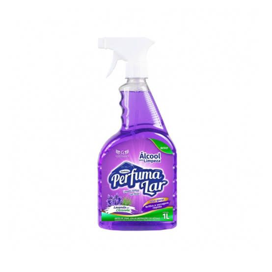 Álcool perfumado para limpeza, fragrância lavanda, embalagem spray 1L.