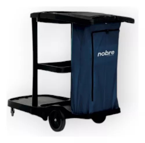 Carro multifuncional para limpeza com compartimentos, tampa e bolsa. Alta capacidade.