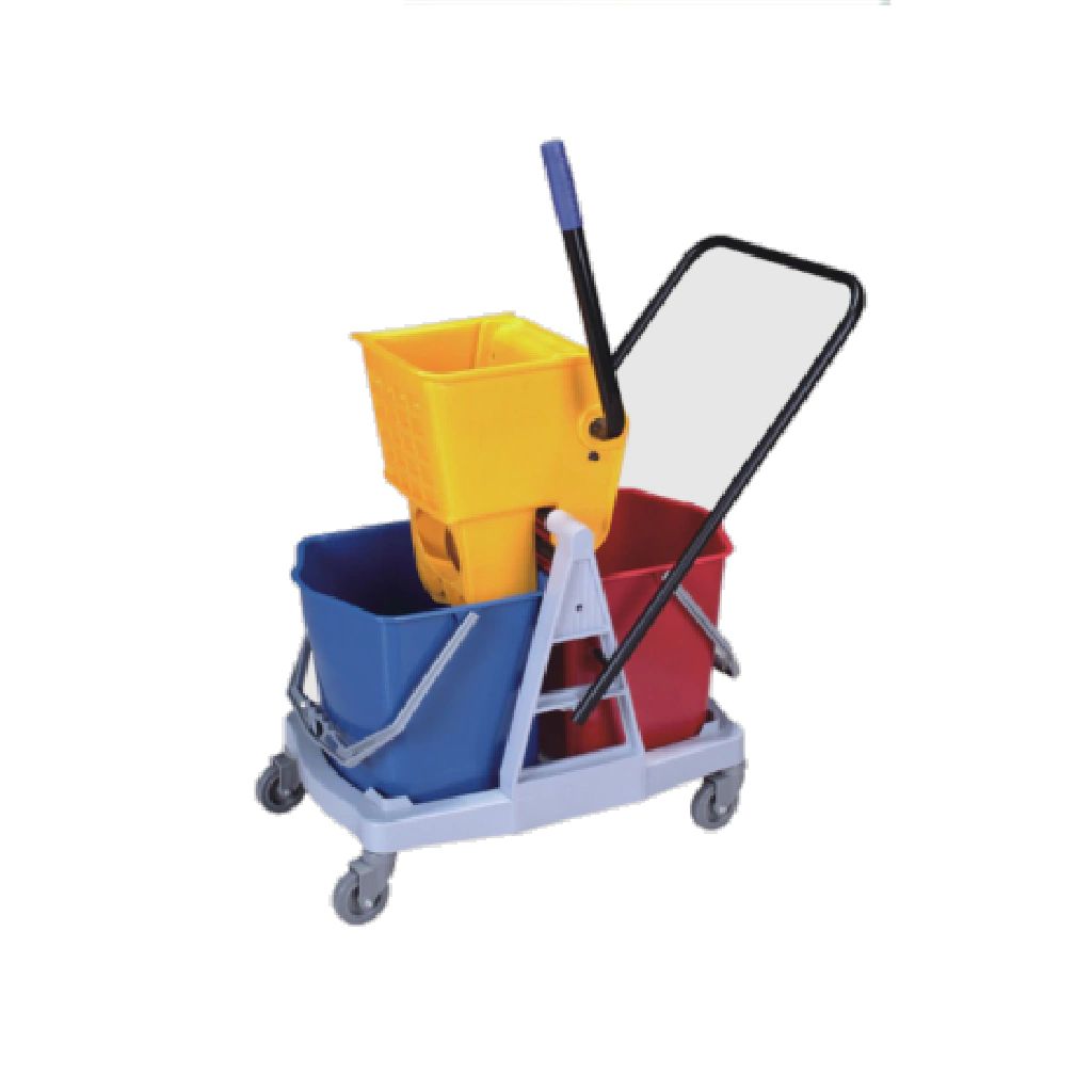 Carro limpeza profissional 34L com baldes duplos, espremedor e alavanca.