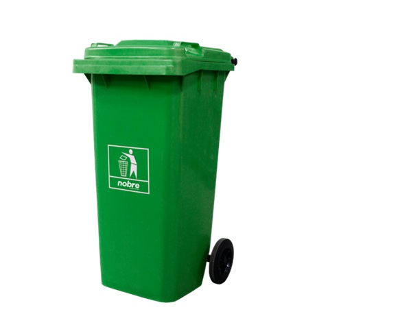 Coletora de lixo com rodas, 120L, resistente, padrão europeu, cor verde.