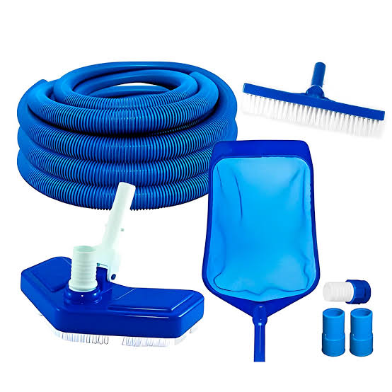 Contém acessórios básicos para limpeza e manutenção de piscinas.
