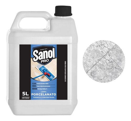 Limpa porcelanato Sanol Pro 5L, brilho e proteção para pisos finos.