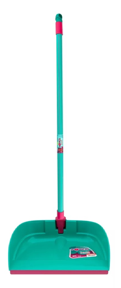 Pá plástica com cabo longo, ideal para recolher resíduos sem esforço.