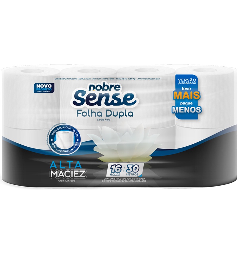 PAPEL HIGIENICO 10 X 30 VIRGEM FOLHA DUPLA C/16 NOBRE SENSE