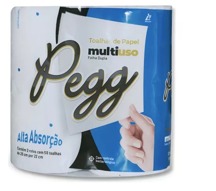 PAPEL TOALHA COZINHA PEGG FOLHA DUPLA 50 METROS PACOTE COM 2