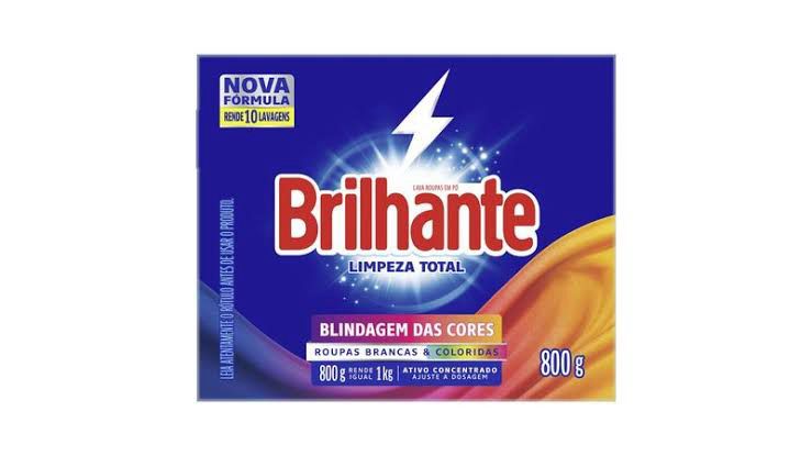 Sabão em pó Brilhante 800g, lava roupas com alto rendimento.