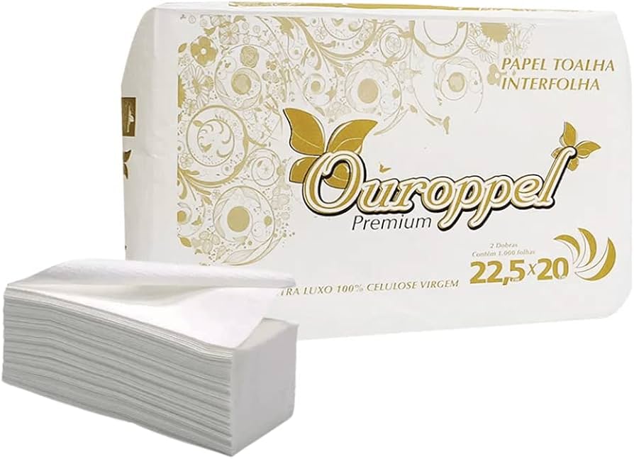 TOALHA PAPEL 2DB 100% CELULOSE 22,5x20 C/1000fls - OUROPPEL REF. 1913 24g quantidade