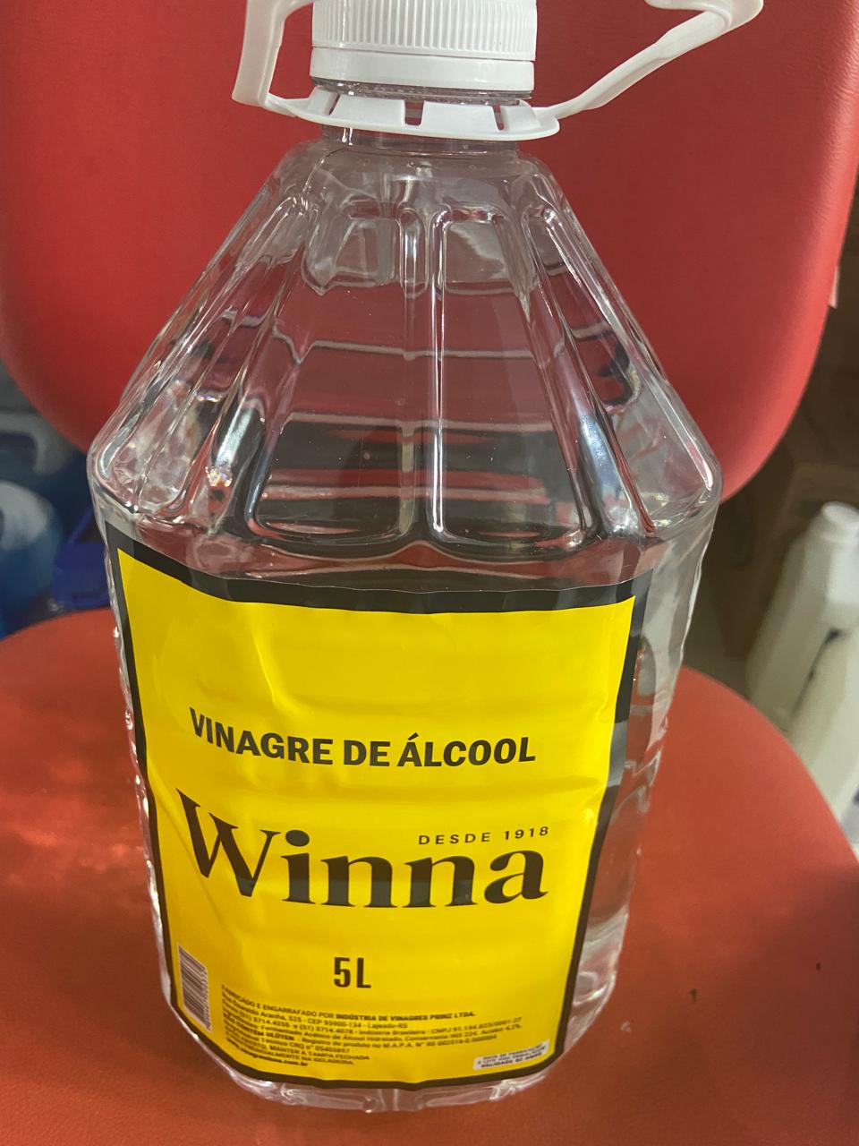 Vinagre de álcool Winna 5L, ideal para limpeza e desinfecção.